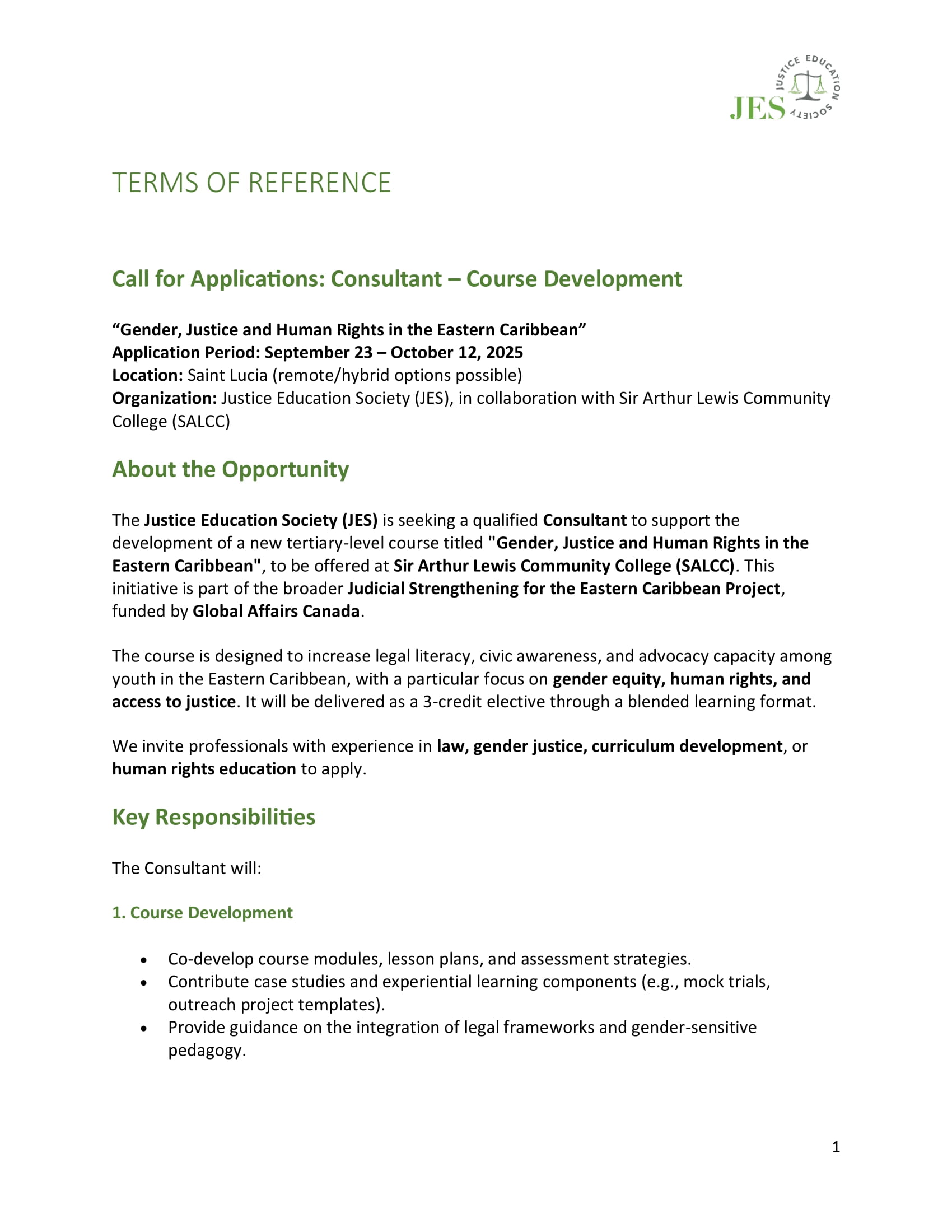 Call for Applications for Consultant - Course Development: “Gender, Justice and Human Rights in the Eastern Caribbean”
