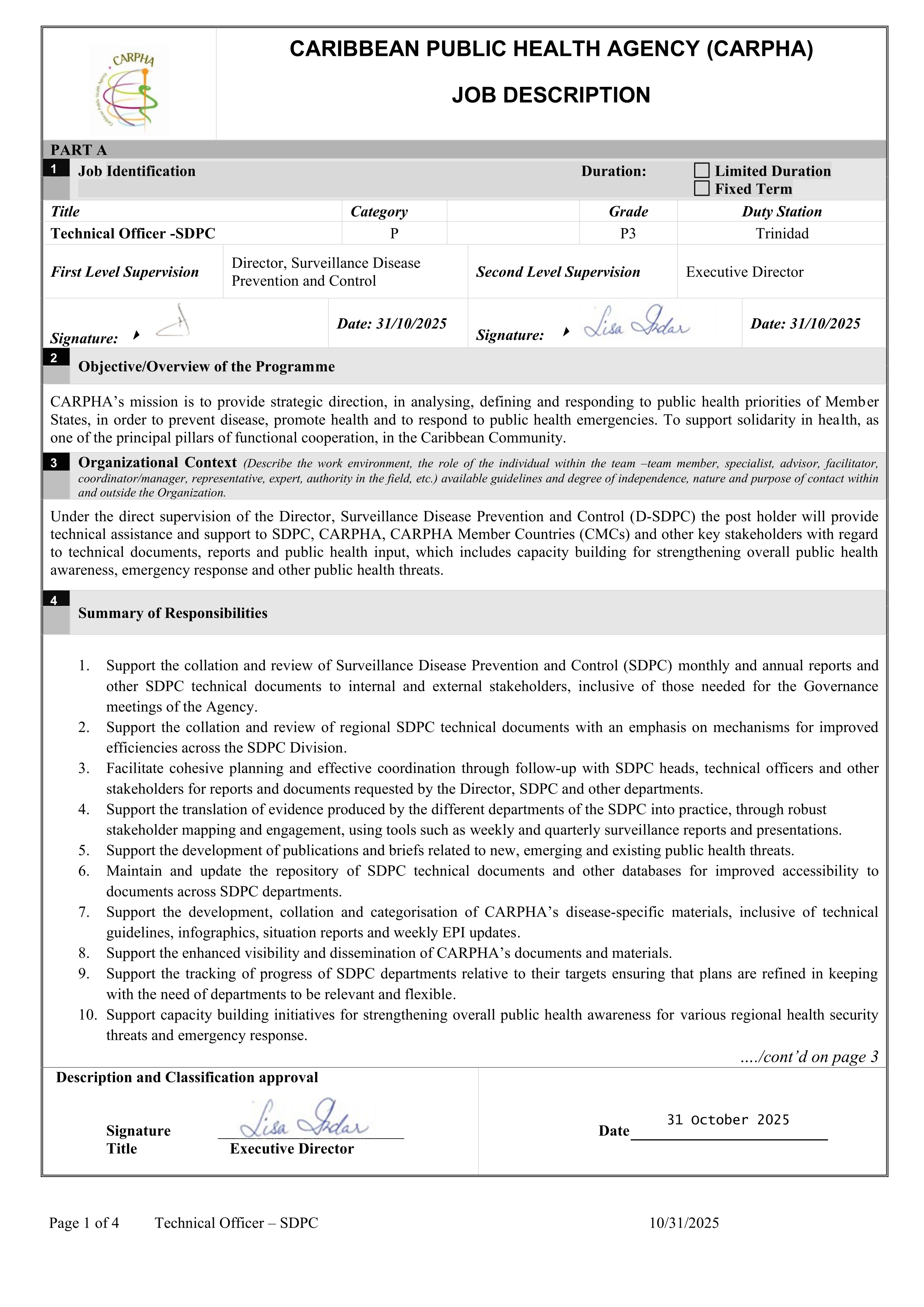 CARPHA: Administrative Assistant, Tourism Health Program (THP)
