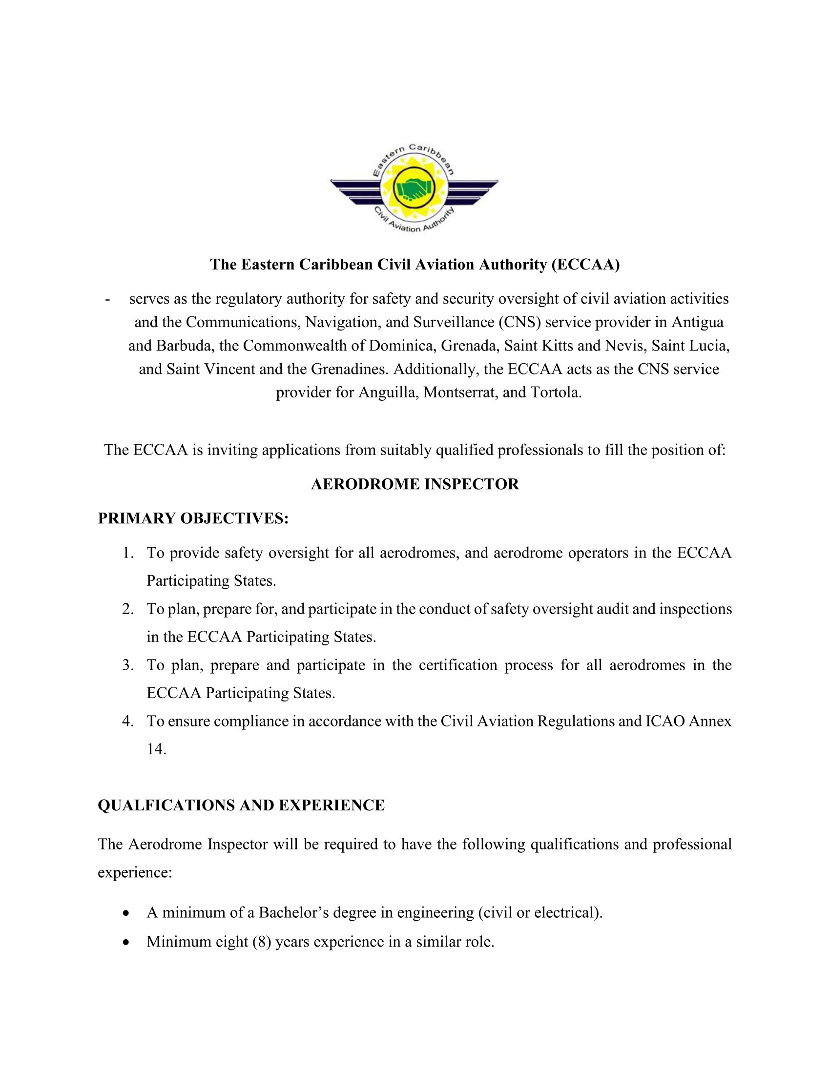 Human Resources Manager, Eastern Caribbean Civil Aviation Authority, P.O. Box 1130, St. John’s, Antigua and Barbuda at .