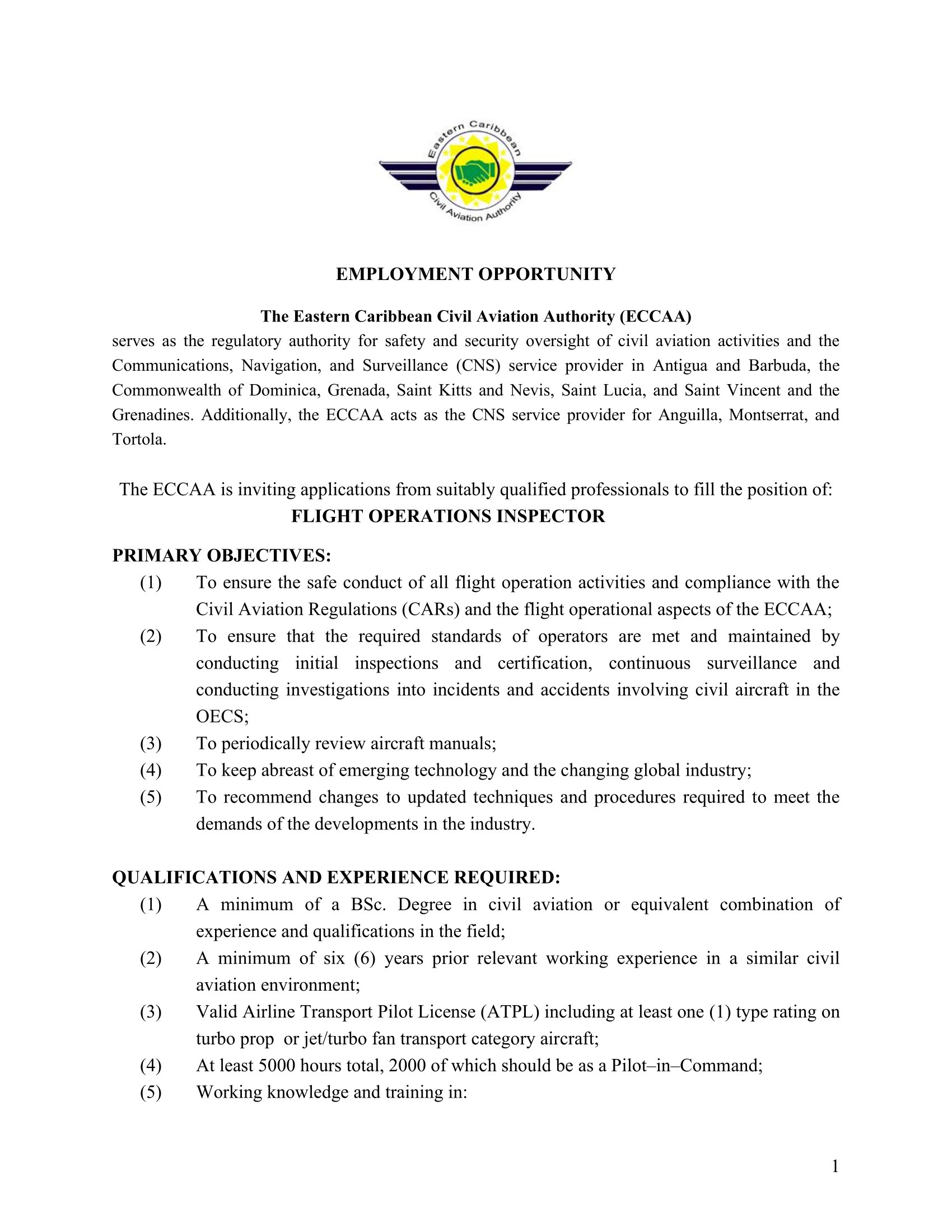 Eastern Caribbean Civil Aviation Authority (ECCAA) - Flight Operations Inspector