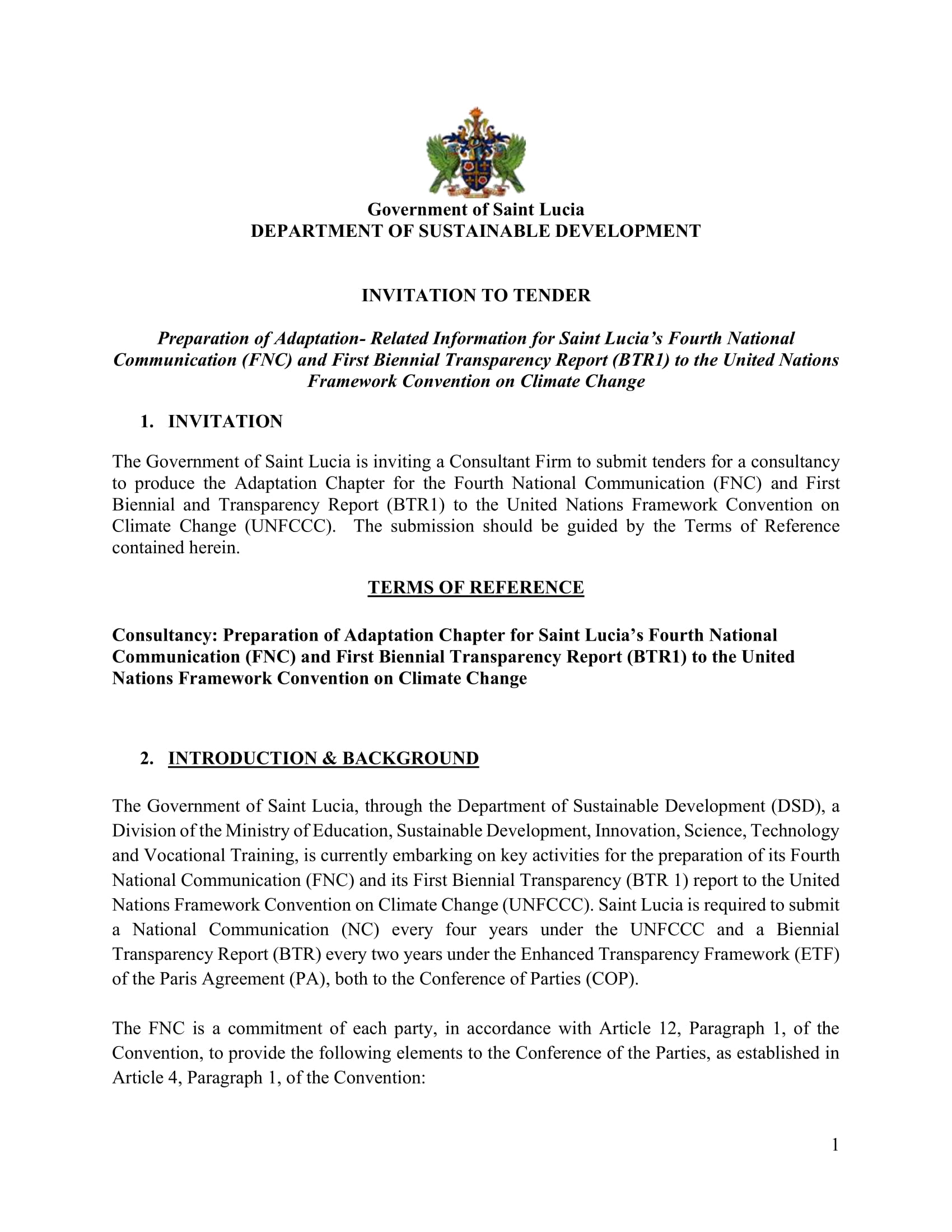 Government of Saint Lucia: Consultancy for 2025 Climate Change Adaptation Measures